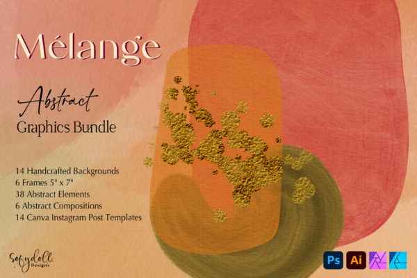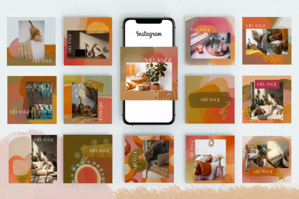Mélange – Abstract Graphics Bundle gives you a variety of vibrant abstract backgrounds and elements to create rich & lovely designs. Utilize the included backgrounds or create your own with the PNG elements provided. Mélange – Abstract Graphics Bundle is ideal for creating invites, prints, package designs, fabric patterns, stationery and much more. I’ve also included a Canva template that contains 14 Instagram Posts – so you have everything you need to create a uniform look for your brand.