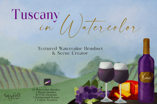 Who doesn’t love the thought of escaping to the beautiful hills and rich wineries of Tuscany…hence my latest Procreate set was born.